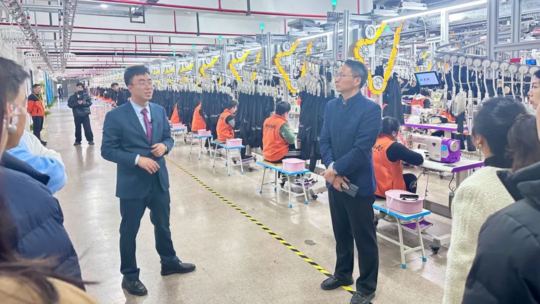 12月8日下午,在浙江省服裝產業數字化會議的契機下,政府領導及優秀企業代表團受邀參觀了聚衣堂服裝智能工廠。
